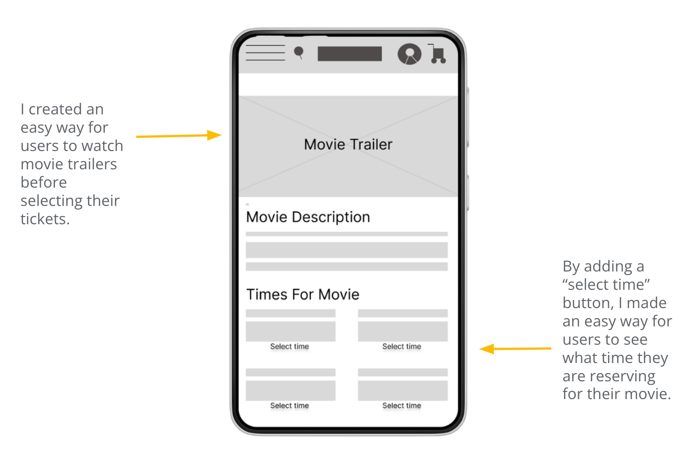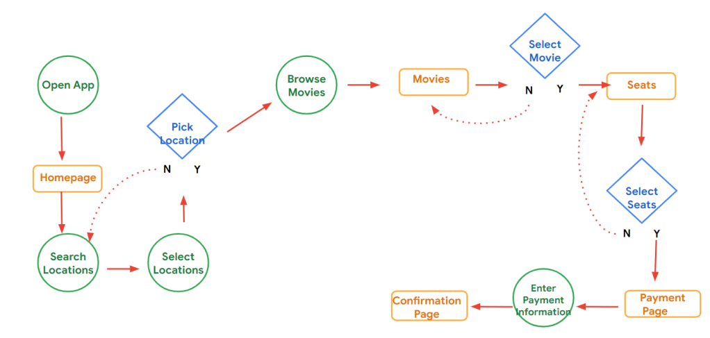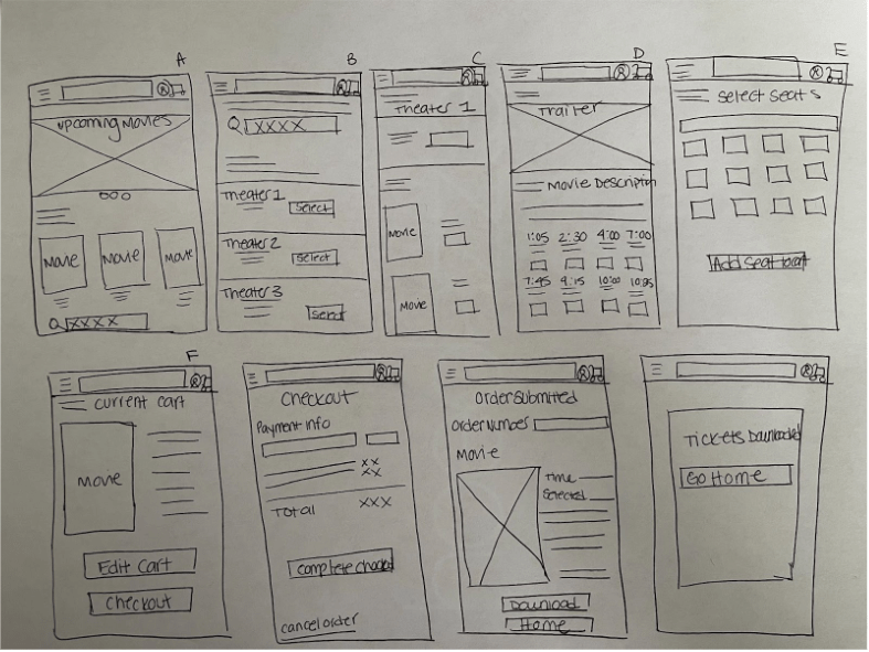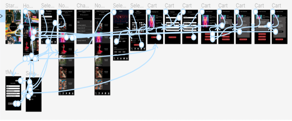 Using the carefully planned digital sketches, I started creating a simple prototype. The main thing I focused on was making it easy for users to build and buy movie tickets. This prototype was designed to be part of a study to see how well it works for users.
