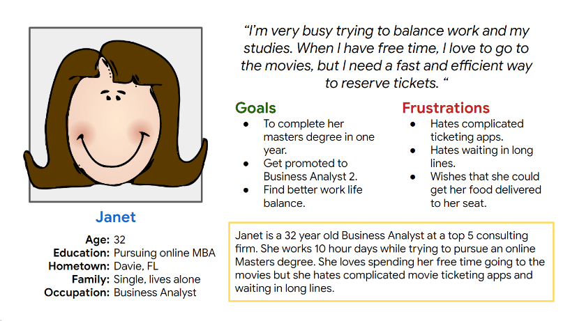 Meet Janet, a dynamic and driven individual who seamlessly juggles her roles as a dedicated full-time student and a savvy business analyst. Given her perpetual time constraints, Janet ardently seeks a swift and streamlined solution for reserving movie tickets that aligns seamlessly with her demanding schedule.