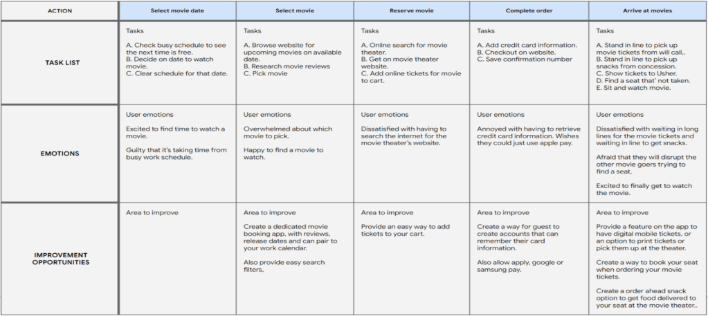 Upon engaging in a comprehensive interview with Janet, I gained a profound insight into the pivotal significance of crafting a rapid and trailblazing application tailored to the needs of industrious professionals. Through the creation of a meticulous user journey map, I embarked on a journey of comprehending the intricate hurdles Janet confronted in her pursuit of attending movies amidst her bustling schedule.
